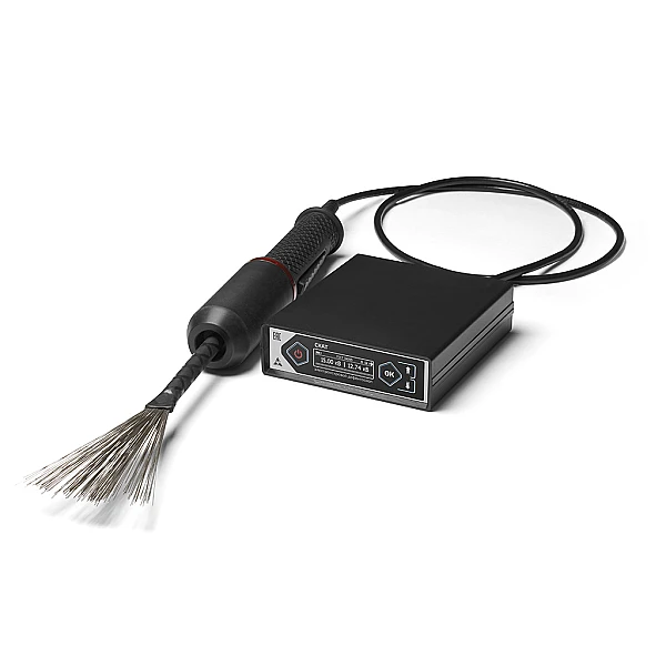 Конструктивно прибор включает в себя электронный блок, выполненный из прочного пластика ABS-UL94-HB и высоковольтный держатель с кабелем и сменными электродами.