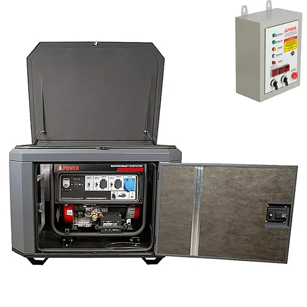 Купить Генератор A-iPower A8000EAX в тихом зимнем кожухе 1200 RAL 7024 + блок автозапуска A-iPower 400 В, 25 А в Москве легко — просто позвоните по телефону: 8-800-551-11-01