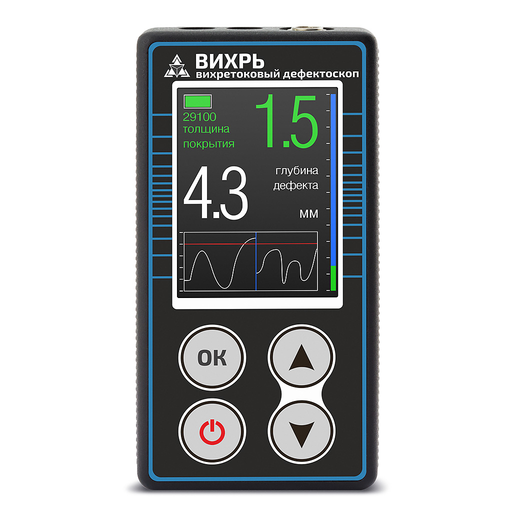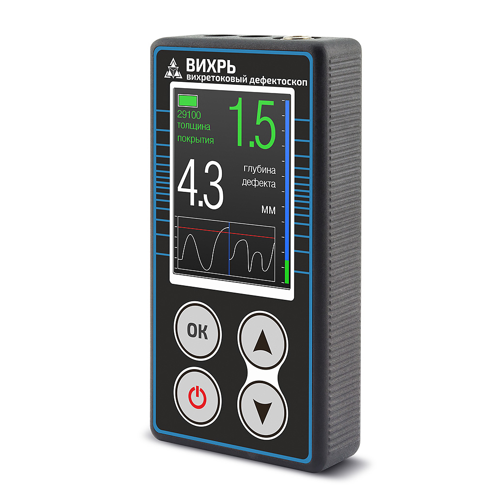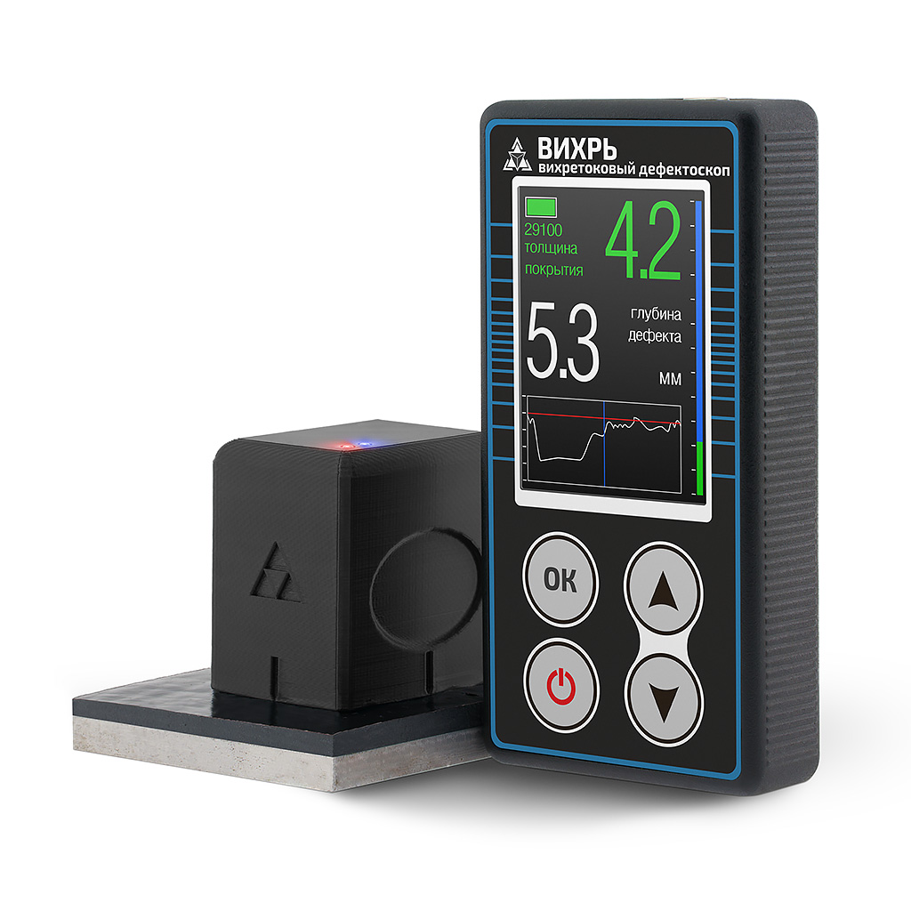 Многофункциональный магнитно-вихретоковый дефектоскоп Вихрь предназначен для выявления и определения глубины трещин, стресс-коррозионных трещин в металлических ферромагнитных конструкциях, в том числе под слоем коррозии и/или защитного покрытия. Кроме того, дефектоскоп позволяет определять глубину коррозионного повреждения, а так же толщину защитного покрытия.