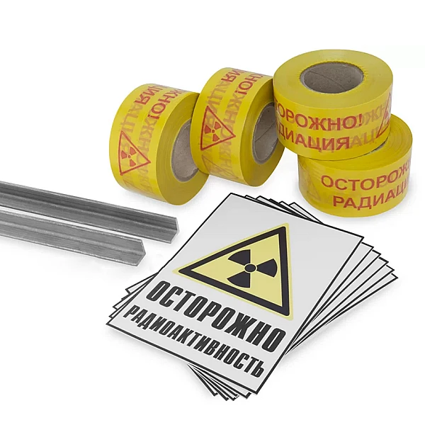 Ленту «Осторожно радиация» и знаки радиационной опасности, входящие в набор, используют для привлечения внимания к объектам потенциальной или действительной опасности вредного воздействия ионизирующего излучения на людей.